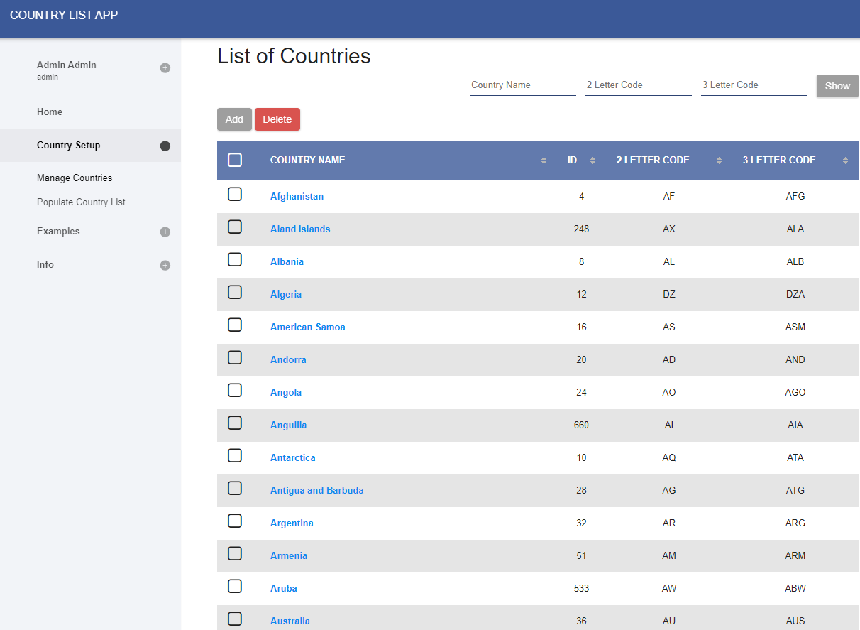 The Country List App is a utility app that allows you to set up and manage a list of countries independently.