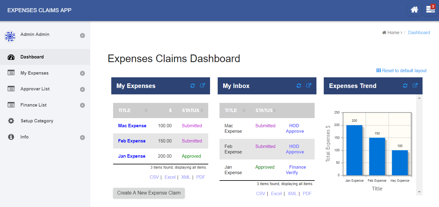 The Expenses Claim app was designed for employees to submit and head of departments (HOD) to approve expense claims online.