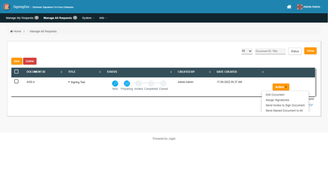- Manage all the signed documents.