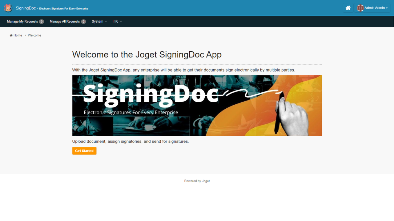 With the Joget SigningDoc App, any enterprise will be able to get their documents signed electronically by multiple parties. Upload document, assign signatories, and send for signatures.